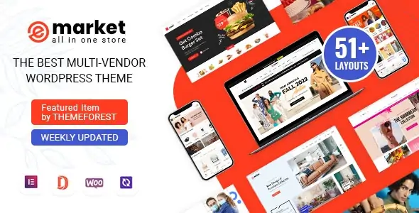 eMarket là theme WordPress đa chức năng, được phát triển tối ưu cho các mô hình sàn thương mại điện tử (marketplace) với nhiều nhà bán hàng. Theme tích hợp hoàn hảo với các plugin như Dokan, WC Vendors, MultiVendorX… giúp bạn dễ dàng xây dựng một nền tảng marketplace chuyên nghiệp, hiện đại và hiệu quả trên nền tảng WordPress.